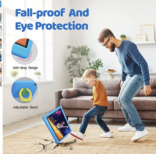 - 【Ekran dotykowy IPS 1280 x 800 HD i etui silikonowe do kontaktu z żywnością】10,1 cala, wyświetlacz 1280 x 800 HD, ekran jest wyraźny i zapewnia wyjątkowe wrażenia wizualne. Ekran LCD jest wyposażony w technologię Low Blue Light, która chroni oczy dziecka. Uchwyt na tablet z możliwością regulacji 360 stopni umożliwia dzieciom dobrą widoczność pod każdym kątem. Etui ochronne z silikonu przeznaczonego do kontaktu z żywnością pomaga uniknąć uszkodzeń w razie upadku i kolizji