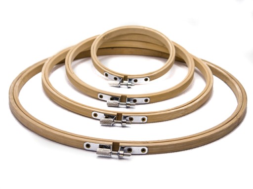 - zestaw czterech bambusowych tamborków różnej wielkości