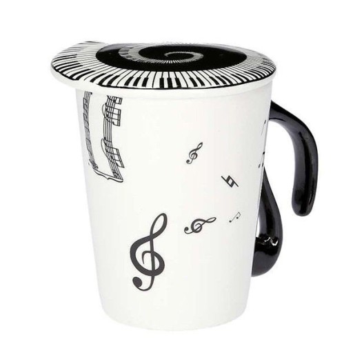 - w zestawie kubek z wzorem nutek oraz porcelanowa pokrywka