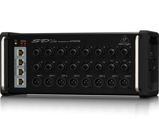 Behringer SD16 to nowy stagebox z 16 zdalnie sterowanymi przedwzmacniaczami Midas, 8 wyjściami i hubem spersonalizowanego minitoringu łączności internetowej i Ultranet AES50.