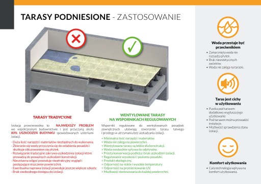 - Pod płyty ceramiczne, kamienne, betonowe, legary itp.