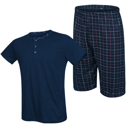 BAWEŁNIANA PIŻAMA MĘSKA Z KRÓTKIM RĘKAWEM ORAZ SPODNIAMI W KRATĘ