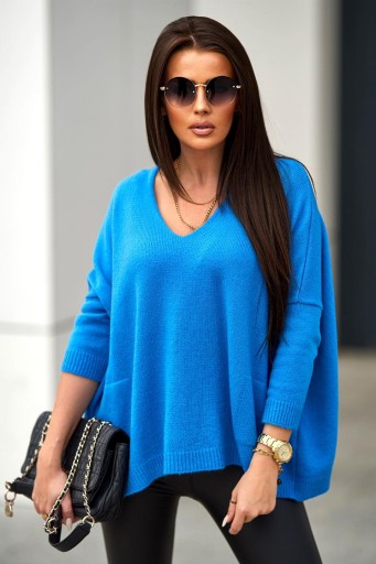Oversizowy krój swetra sprawia, że pasuje na każdą sylwetkę