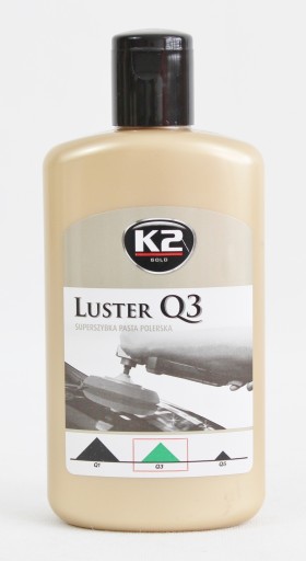 K2 LUSTER Q3 ZIELONY to pasta do maszynowego polerowania lakieru. Usuwa rysy po papierze ściernym, myjniach automatycznych, zmatowienia, skórkę pomarańczową, oksydację, hologramy, przebarwienia. Doskonale nadaje się do polerowanie świeżo nałożonych lakierów oraz do renowacji starych, zniszczonych powłok. Wytwarza mało ciepła podczas pracy, przez co nie przegrzewa powierzchni. Daje doskonałe efekty podczas stosowania w tzw. jednym kroku - tj. 1 cykl polerowania z 1 gąbką. W większości przypadków nie są potrzebne żadne dodatkowe czynności. Przeznaczona do polerowania: lakierów samochodowych wszelkiego rodzaju, lakierów przemysłowych, reflektorów, celulozy, mebli, powierzchni syntetycznych, akryli i wielu innych.