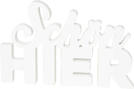 - Wielofunkcyjność: biały napis "Schön Hier" ma wszechstronne zastosowanie. Niezależnie od tego, czy na stole, na parapecie czy w pokoju dziecięcym. Dzięki ciepłym słowom napisu każdy gość czuje się bezpośrednio dobrze i mile widziany.