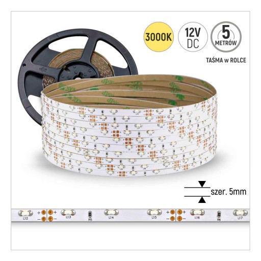 Diody LED są zamontowane na jednym brzegu taśmy, skierowane pod kątem 90 stopni.