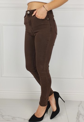 Świetne klasyczne spodnie w kolorze brązowym, posiadają wysoki stan. Świetne do sportowego obuwia ale idealnie też sprawdzą się w połączeniu ze szpilkami, dzięki swojej uniwersalności, pasują niemal do każdej stylizacji. Elastyczny materiał podkreśla kobiecą sylwetkę. Spodnie są dopasowane, rozciągają się. Podkreśl swoje kobiece kształty! Spraw, by Twój codzienny Look był niepowtarzalny. Spodnie po obu stronach posiadają kieszenie.