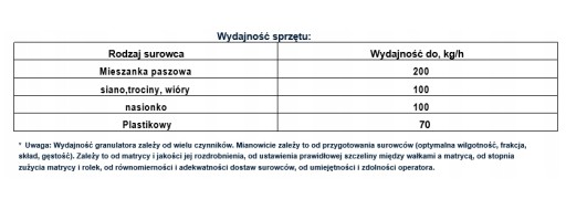 - Wydajność 200 kg/h