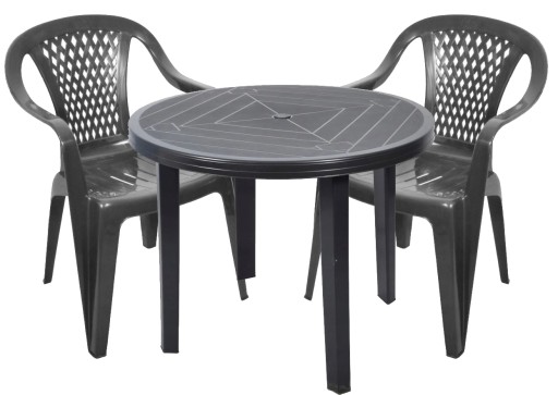 КОМПЛЕКТ ПЛАСТИКОВЫХ СТУЛЬЕВ 2+1, САДОВЫЙ СТОЛ ГРАФИТ