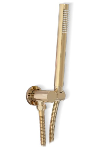 Zestaw natryskowy to niezbędny element każdej łazienki wyposażonej w kabinę lub ściankę prysznicową. Nowoczesny zestaw prysznicowy składający się z deszczownicy na ramieniu, baterii, słuchawki, uchwytu i długiego węża w eleganckim złotym kolorze. System Anti-Calc zapobiega osadzaniu się osadu z wody i kamienia. Solidny prysznic zapewni bezawaryjne użytkowanie, a materiał nie wymaga specjalnej konserwacji, czy użycia mocnych środków chemicznych.