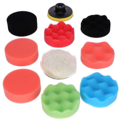 Zestaw padów, gąbek polerskich dzięki, którym wypolerujesz lakier w swoim samochodzie nawet w miejscach trudno dostępnych.