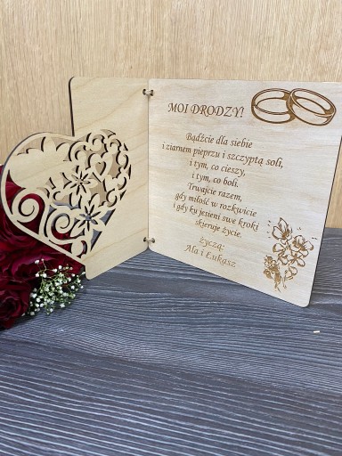 Kartka na ślub robiona indywidualnie pod zamówienie ploterem na sklejce brzozowej 3mm.
