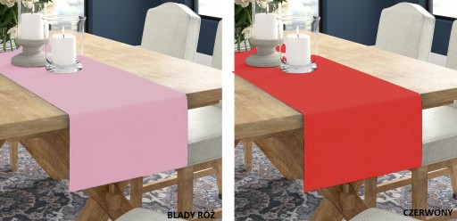 Bieżnik wykonane z tkaniny gładkiej i matowej dlatego bardzo ładnie prezentują się w salach ze słabym jak też mocnym oświetleniem. Nakładka w bardzo bogatej kolorystyce, bardzo długo zachowują głębie koloru - nawet po kilkunastu praniach. Tkanina odporna na mocne zagniecenia.