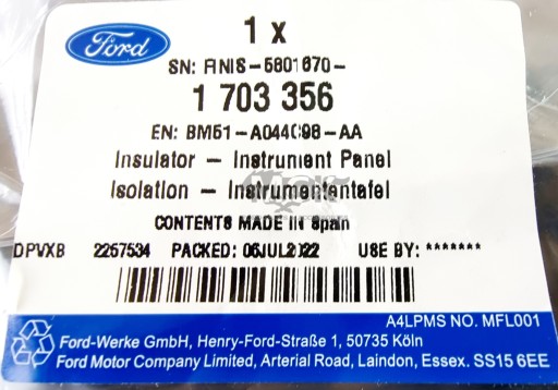 KUPUJESZ ORYGINALNY PRODUKT DO SAMOCHODÓW MARKI FORD. WSZYSTKIE CZĘSCI POCHODZĄ Z FORD POLSKA. KORZYSTAJĄC Z ORYGINALNYCH CZĘŚCI FORDA MASZ PEWNOŚĆ CO DO JAKOŚCI I NIEZAWODNOŚCI ALE PRZEDE WSZYSTKIM OTRZYMUJESZ PRODUKT BEZPIECZNY I DEDYKOWANY DO TWOJEGO AUTA PRZEZ PRODUCENTA.