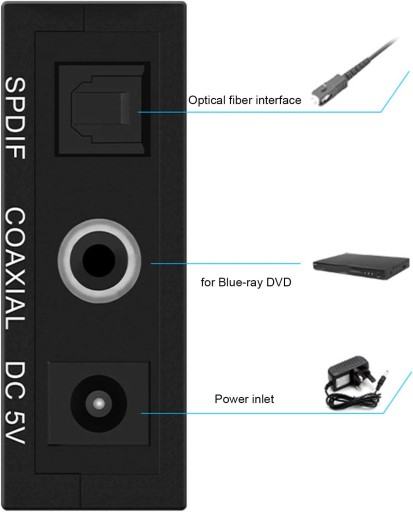 - Synchronizacja dźwięku wyjściowego i wideo, obsługuje cyfrowe wejście audio dla Toslink/SPDIF lub Coaxial.