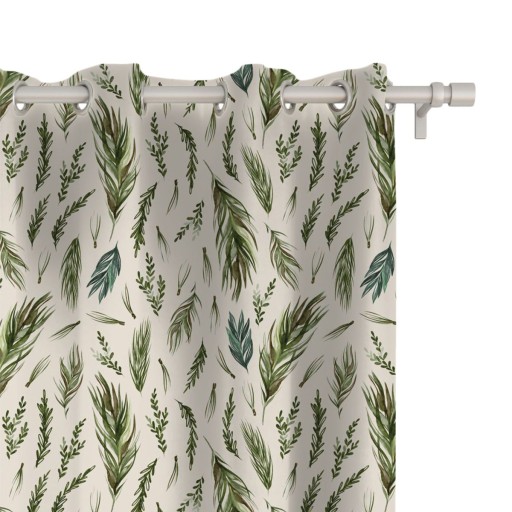 Zasłona WINTER wzór BN47 | Sosnowe gałęzie na beżowym tle 150 x 260 cm tkanina standard
