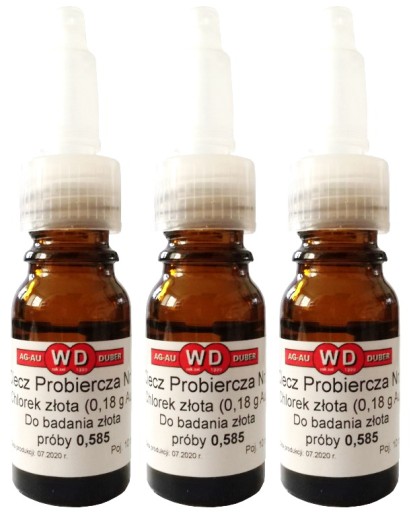 3x Ciecz Probiercza 10ml CHLOREK ZŁOTA 0,18g Au