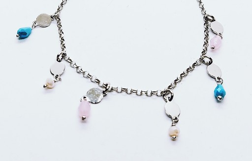 Oryginalna bransoletka wykonana ze srebra pr 925 z kolorowymi kryształkami i kółeczkami