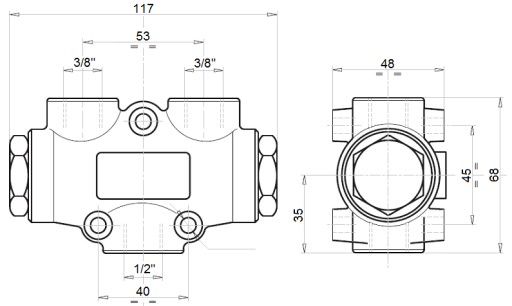Zalecany zakres przepływu wchodzącego na P: 25-40L/min Ilość otworów hydraulicznych: 3 Wszystkie gwinty wewnętrzne: 1/2'' Materiał: żeliwo Maksymalne ciśnienie: 250 bar Waga: 1,280 kg