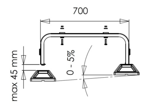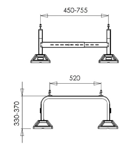 - Regulowana poprzeczka pozioma zapewniająca płynną możliwość dopasowania rozstawu podstawy do szerokości urządzenia w zakresie 450-755 mm,