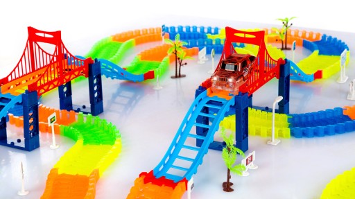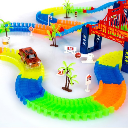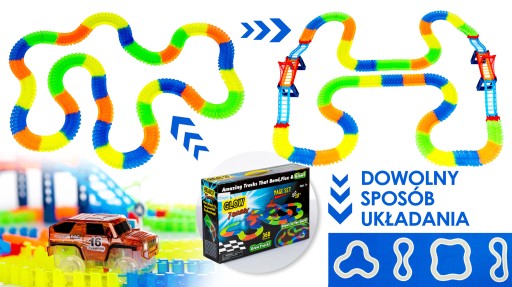Tor można dowolnie skręcać i wyginać, tworząc coraz to nowe trasy. Elementy możesz połączyć ze sobą w dowolnej kolejności i cieszyć się świetną zabawą z całą rodziną. Jest to aż 5 m trasy dla miłośników samochodzików, torów, wyścigów, konstruktorów. Auto wystarczy tylko uruchomić i dać na drogę i patrzeć jak szybko sunie po stworzonych zakrętach.
