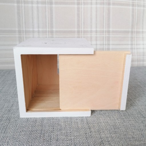 Drewniana, ręcznie malowana skarbonka w kształcie sześcianu,
