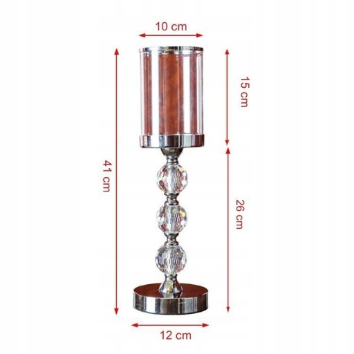 W metalowej wnęce podstawki klosza, znajduje się lustrzana wkładka, która odbija padające na nią światło emitowane przez palącą się świecę, co daje dodatkowy piękny efekt rozświetlenia a chromowana obwódka daje wrażenie rozproszenia światła.