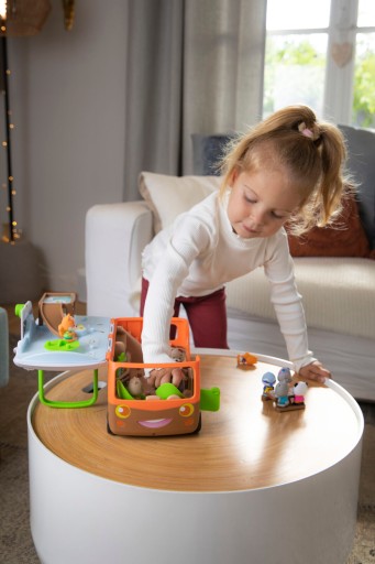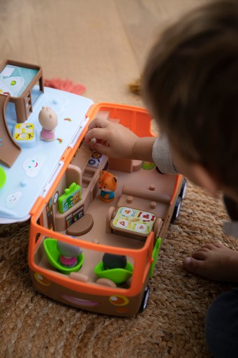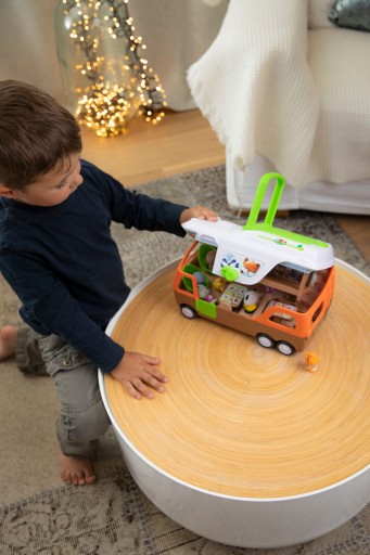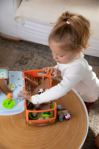 Wspaniała, duża przenośna zabawka (kamper ma rączkę do wygodnego trzymania), z wieloma elementami, pobudzającymi wyobraźnię, rozwijającymi umiejętności motoryczne dziecka.