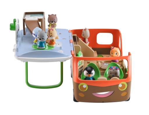 - Zestaw zawiera: otwierany kamper, stół piknikowy, jedno zwierzątko.