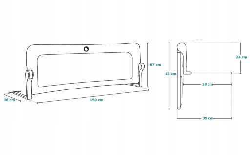 ✔️Prosta instalacja - montaż polega na wsunięciu ramion barierki między łóżko i materac. Barierkę można zamocować za pomocą dołączonych do zestawu śrub i uchwytów.