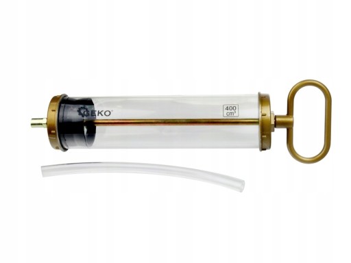 Ręczna strzykawka do oleju o pojemności 400ml. Służy do wstrzykiwania bądź odsysania oleju z ciężko dostępnych miejsc tj. skrzynia biegów, mostów napędowych itp.