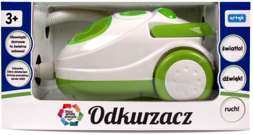 Odkurzacz na baterie. Zabawka z efektami świetlnymi i dźwiękowymi. Wymiary opakowania: 29,5 x 15 x 15 cm. Bateria: 3 x AA (nie załączona)