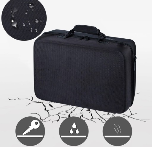 Kuferek z zewnątrz wykonane jest z wysokiej jakości twardego tworzywa sztucznego.Środek wyścielony jest miękkim materiałem. Nie musisz martwić się o zadrapania, bądź uszkodzenia mechaniczne w czasie transportu. Etui powiada wewnątrz specjalne kieszenie do gier (18 sztuk) oraz różne przegródkę w które możemy zmieścić wszystkie potrzebne akcesoria do PS5.