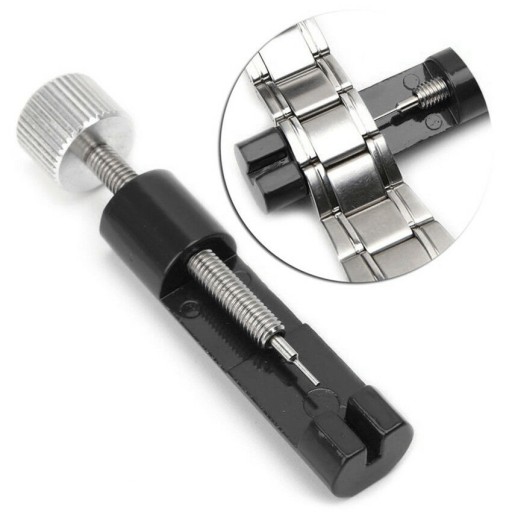 Bardzo dobrej jakości, niewielki i wygodny przyrząd do wyciągania i ponownego wbijania pinów mocujących ogniwa bransoletek. W zestawie są 4 końcówki, pozwalające dopasować średnicę końcówki do średnicy pina. Łatwo też dopasować do różnych szerokości bransoletek. Całość jest bardzo wygodna i naprawdę łatwa w używaniu.