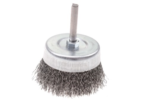 Wysokiej jakości szczotka techniczna doczołowa do zamontowania na wiertarkę. Wykonana z drutu stalowego.
