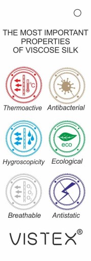 Jedwab wiskozowy posiada właściwości hipoalergiczne, higroskopijne i antystatyczne.