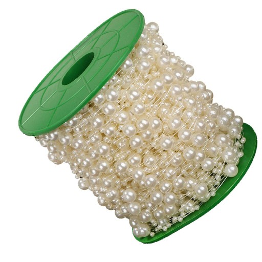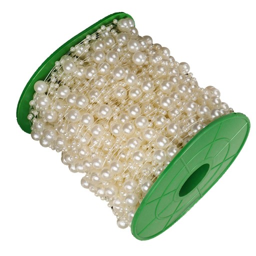 60m Sztuczne Perły Koraliki Sznurek Dekoracja Stołu Weselnego 8 Mm + 3 Mm Beżowy