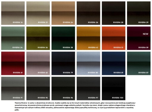Widoczna na ekranie monitora kolorystyka może nieznacznie odbiegać od oryginalnej kolorystyki tkanin z powodu różnych rodzajów monitorów oraz ich skalibrowania.