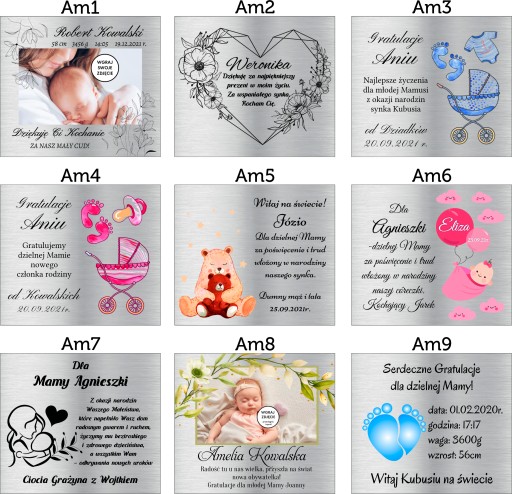 Projekty na tabliczkę do wyboru (można skorzystać z naszych propozycji lub podać nam swój własny, indywidualny tekst w komentarzu po dodaniu produktu do koszyka)