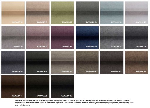 Widoczna na ekranie monitora kolorystyka może nieznacznie odbiegać od oryginalnej kolorystyki tkanin z powodu różnych rodzajów monitorów oraz ich skalibrowania.