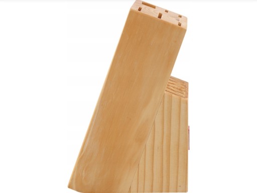 Drewniany blok na noże i nożyczki posiada antypoślizgową podstawę, z pewnością znajdzie swoje miejsce w każdej kuchni.