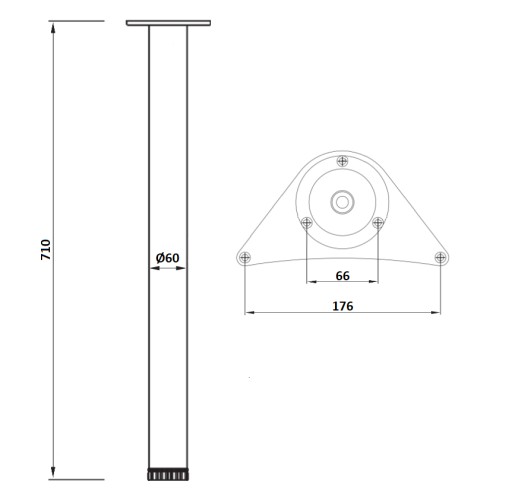 Noga okrągła stanowi solidną oraz trwałą podstawę dla produktów meblarskich takich jak stoły czy biurka. Staranne wykonane mocowania oraz regulacja wysokości są gwarancją stabilności konstrukcji meblowej.