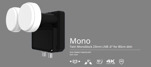 Inverto Monoblock Twin to konwerter klasy Premium cechujący się najniższym współczynnikiem szumów zapewniając najwyższej jakości odbiór sygnału satelitarnego nawet w miejscach poniżej krawędzi obszaru zasięgu danego satelity. Konwerter ten współpracuje zarówno z tunerami cyfrowymi jak i analogowymi wyposażonymi w obsługę przełącznika sygnał DiSEqC. Zaletą rozwiązania jest łatwy montaż bez dodatkowych komplikacji, uchwytów czy podwójnej regulacji poszczególnych konwerterów. Inverto Monoblock Twin posiada dwa wyjścia, które podłącza się za pośrednictwem kabla koncentrycznego bezpośrednio do wejść w odbiornikach.