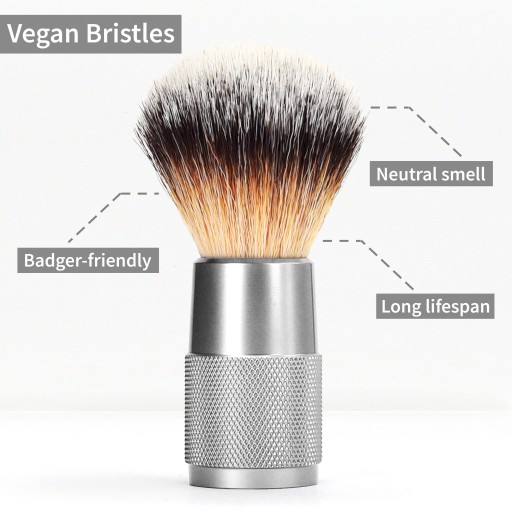 Włosie wykonane jest z nylonu, który do dziś jest najlepszą alternatywą dla sierści zwierzęcej. Włókna syntetyczne naśladują proste, naturalne włosie borsuka, zapewniając naturalne odczucie i miękkość w dotyku. W przeciwieństwie do sierści zwierzęcej ma neutralny zapach.