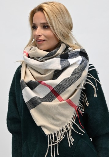 Stylowo dobrane dodatki do stroju pozwalają stworzyć oryginalne stylizacje oraz podkreślić indywidualność, w tym sezonie postaw więc na elegancki szal w angielską kratę rozpoznawalną na całym świecie. Kratowany szal jest dodatkiem, który nigdy nie wyjdzie z mody, pasuje wszystkim kobietom bez względu na wiek i styl ubierania, gdyż można go skomponować niemal z każdym strojem. Szal wykonany jest z mięciutkiego i bardzo przyjemnego w dotyku materiał, wykończony frędzlami.