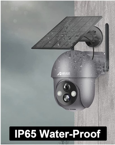 ANRAN Kamera do monitoringu, zewnętrzna bateria WLAN, obracana o 360 stopni, bezprzewodowa kamera monitorująca z panelem słonecznym, czujnik ruchu PIR z światłem, 2-drożne audio, widoczność w nocy, 2,4 GHz, WLAN, Q01 szara.