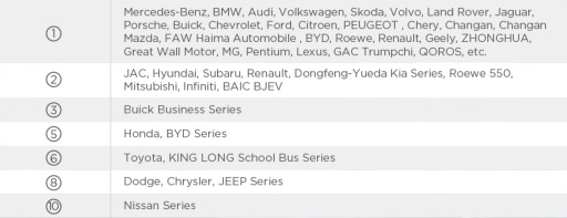 Zastosowanie do europejskich, amerykańskich i azjatyckich modeli samochodów: