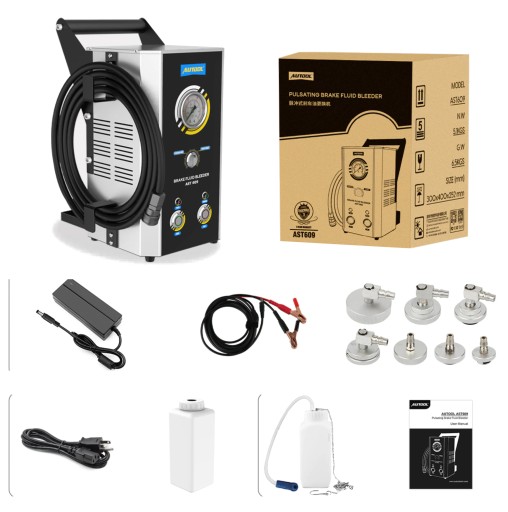 3. Szeroko stosowane]: AUTOOL AST609 nadaje się do europejskich, amerykańskich i azjatyckich zbiorników na hamulec samochodowy, prawie może mieć zastosowanie do wszystkich pojazdów. To pulsujące urządzenie do wymiany oleju hamulcowego ma zastosowanie do standardu oleju hamulcowego Dot3, Dot4, Dot5.1.