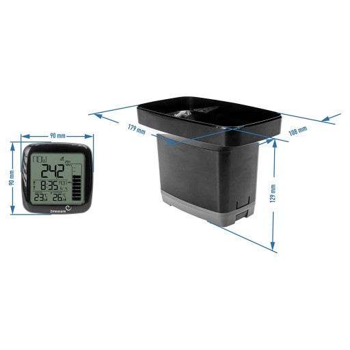 - Pomiar ilości opadów i zmian temperatury - bezprzewodowy czujnik - deszczomierz, dołączony do stacji umożliwia zbieranie pomiarów z temperatury zewnętrznej, a także ilości opadów przesyłając dane do odbiornika na odległość ok. 90 m!
