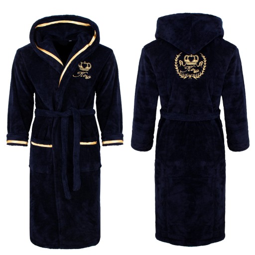 GRANATOWY CIEPŁY SZLAFROK MĘSKI Z KAPTUREM